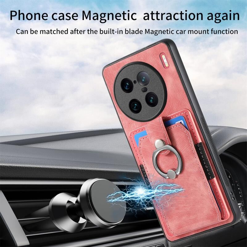 Για vivo X90 Pro + Ρετρό δέρμα αίσθηση δαχτυλίδι πολυ-κάρτα πορτοφόλι υπόθεση τηλεφώνου (ροζ)