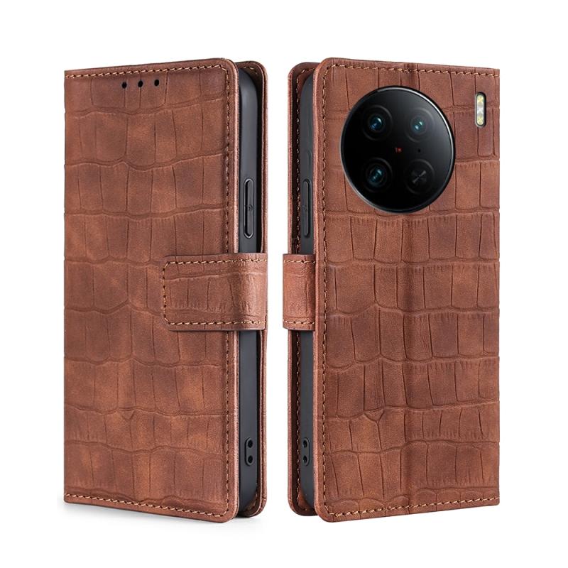 For vivo X90 Pro+ Skin Feel Crocodile Magnetic Clasp Leather Phone Case(Brown)