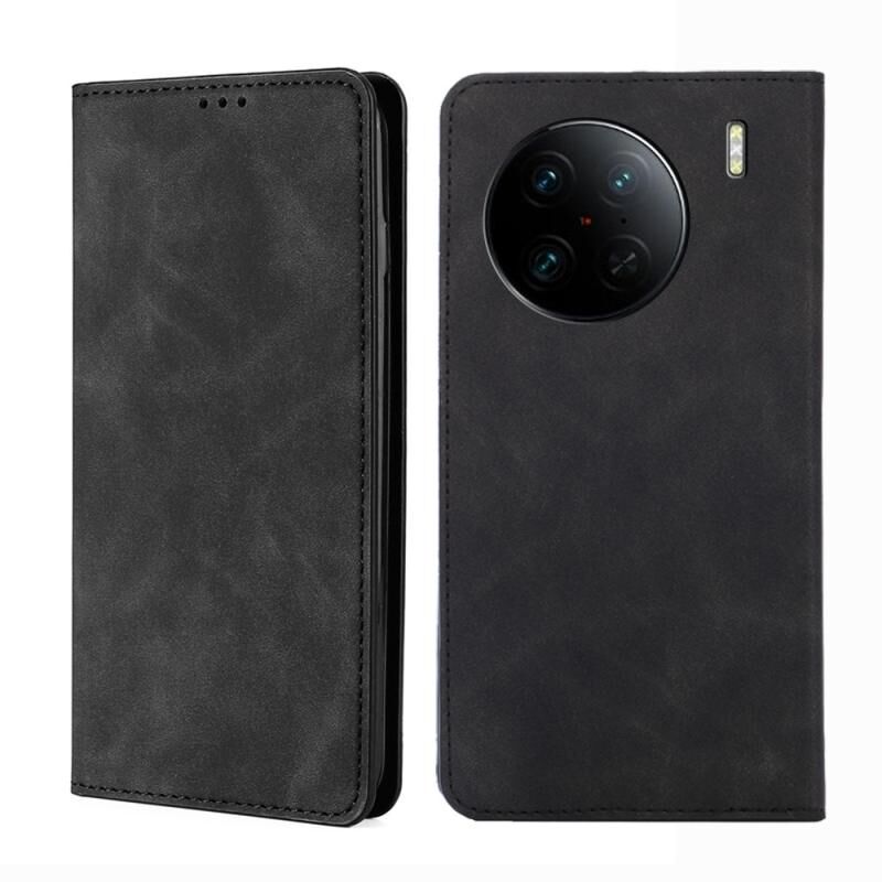 Για το vivo X90 Pro + Skin Feel μαγνητική οριζόντια Flip δερμάτινη θήκη τηλεφώνου (Μαύρο)