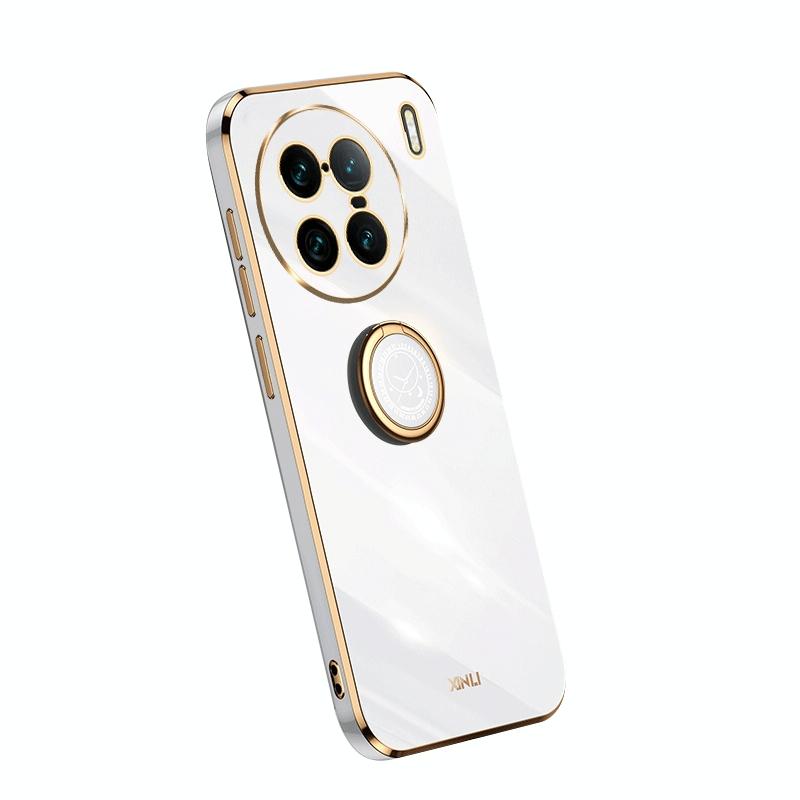 Θήκη κινητού τηλεφώνου TPU με δακτύλιο για vivo X90 Pro+ XINLI, ευθεία άκρη, επιμετάλλωση (Ροζ) (Λευκό)