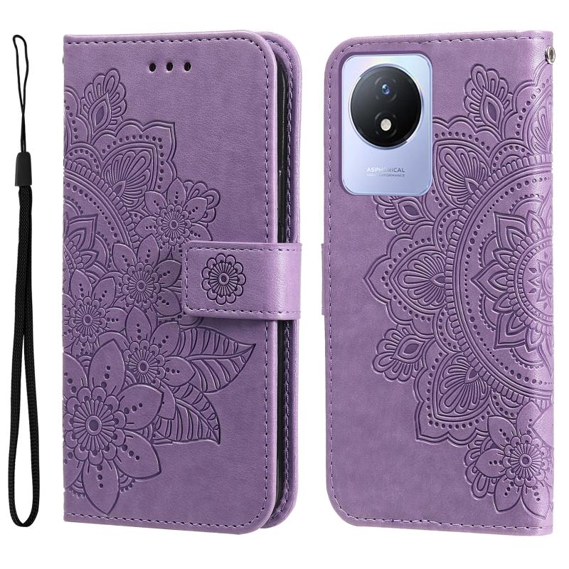 For vivo Y02 4G 7-petal Flowers Embossing Leather Phone Case(Light Purple)