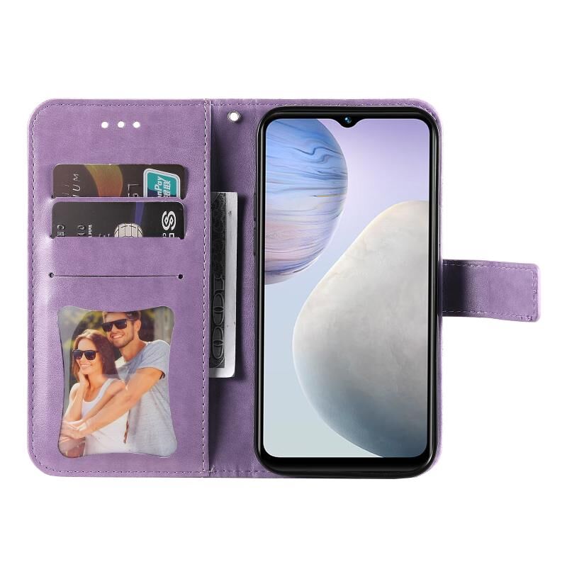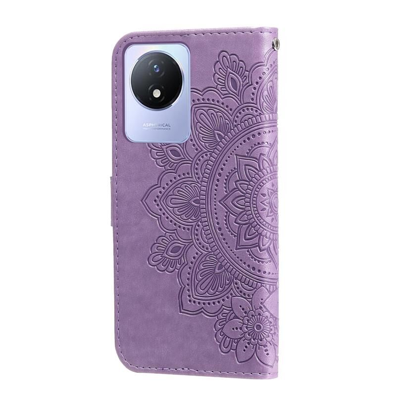 Θήκη τηλεφώνου από δέρμα με ανάγλυφα 7 πέταλα λουλουδιών για vivo Y02 4G (Ανοιχτό Μωβ)