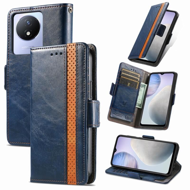 Για vivo Y02 4G CaseNeo Splicing Διπλή μαγνητική πόρπη δερμάτινη θήκη τηλεφώνου (μπλε)