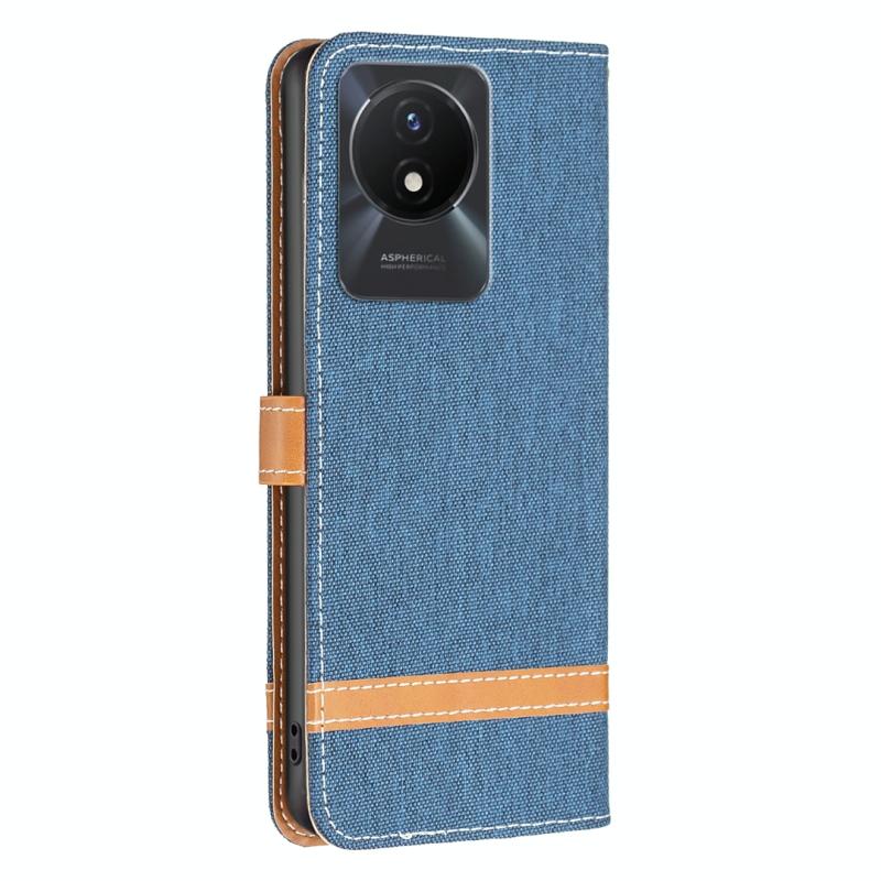 Θήκη τηλεφώνου για vivo Y02 4G, Δερμάτινη με υφή τζιν και χρωματικό σχέδιο (Μαύρο)