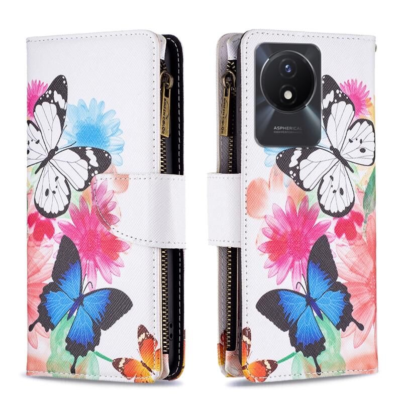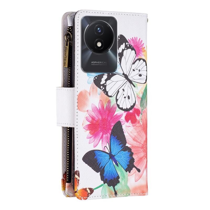 Θήκη τηλεφώνου από δέρμα με φερμουάρ και πολύχρωμο σχέδιο για vivo Y02 4G (Δύο Πεταλούδες)