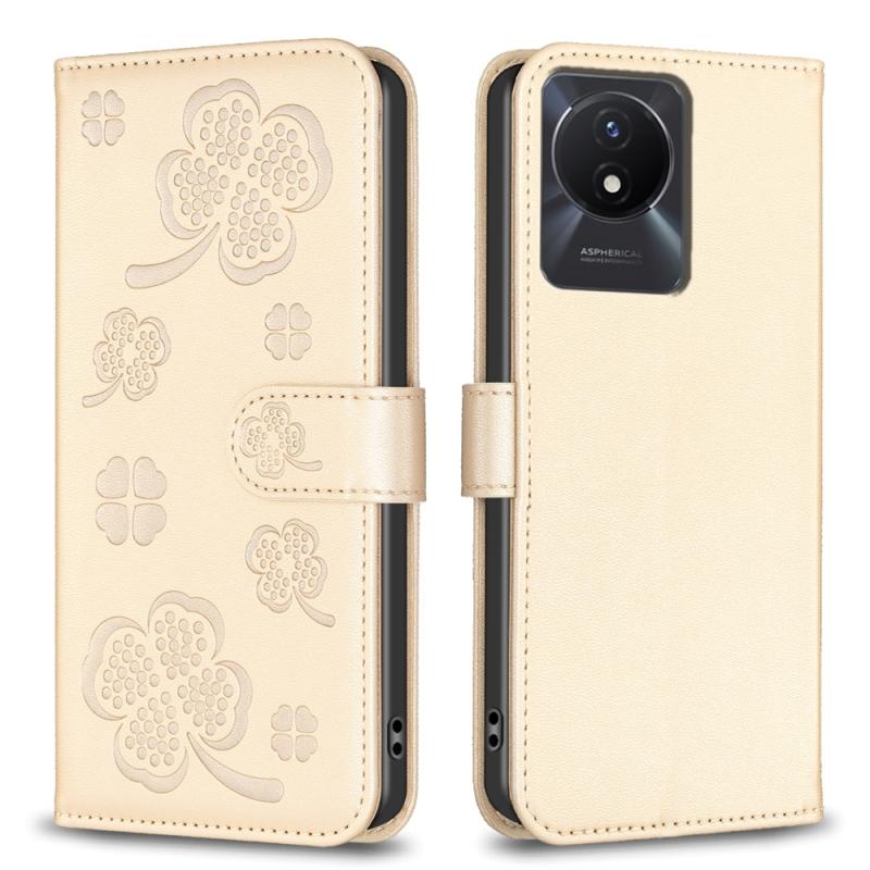 For vivo Y02 4G Four-leaf Embossed Leather Phone Case(Gold)