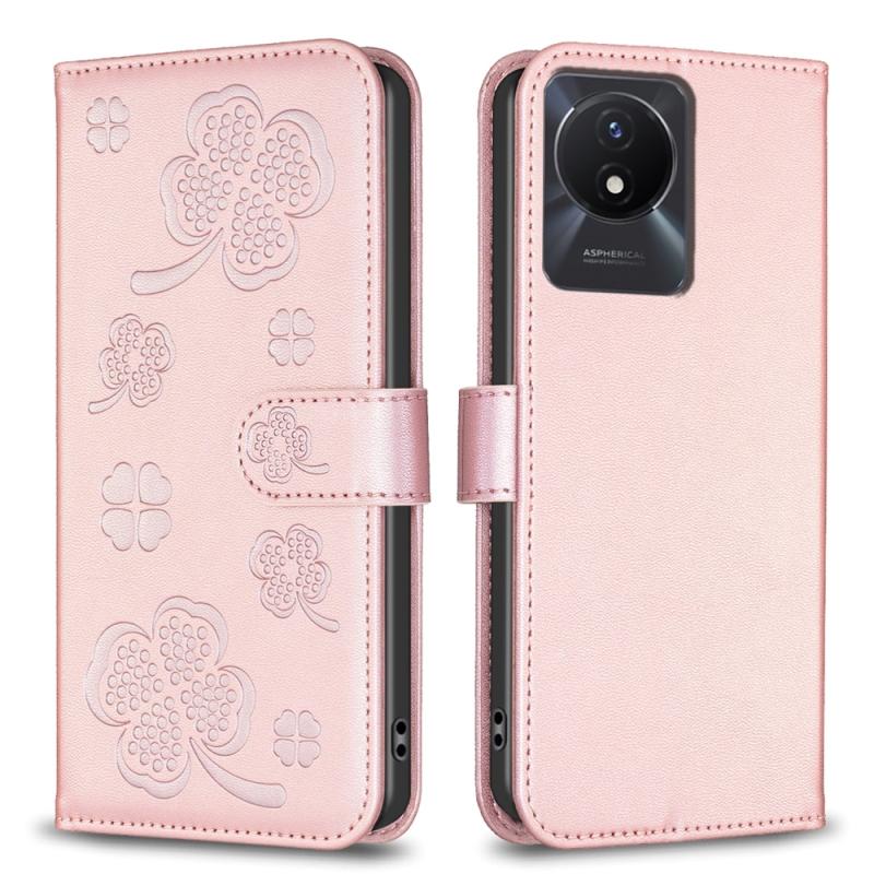 For vivo Y02 4G Four-leaf Embossed Leather Phone Case(Pink)