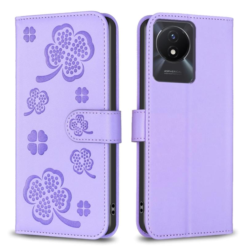 For vivo Y02 4G Four-leaf Embossed Leather Phone Case(Purple)