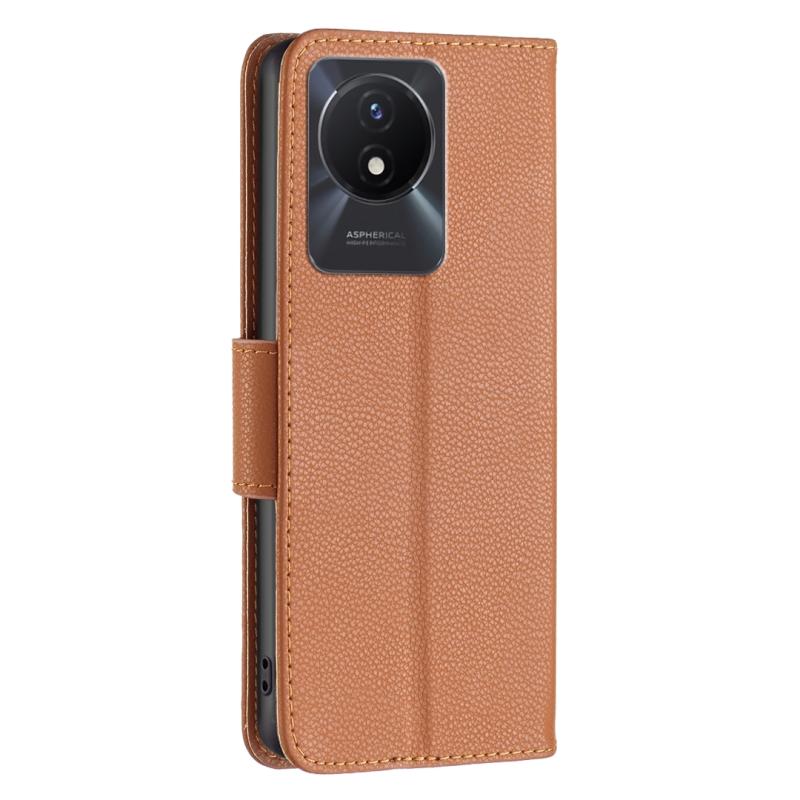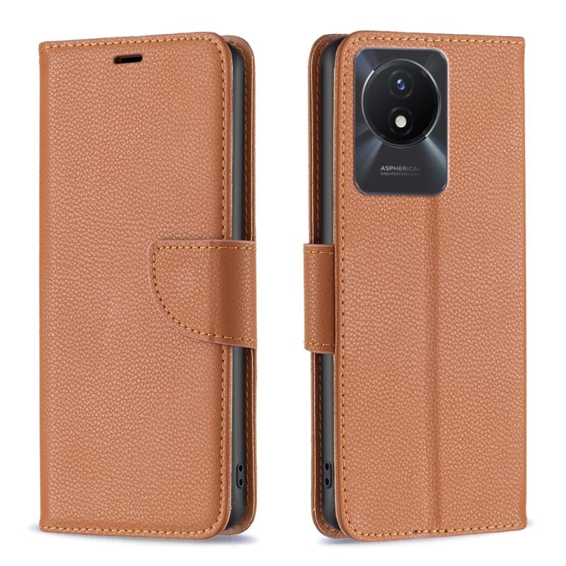 Θήκη τηλεφώνου από γνήσιο δέρμα με καθαρό χρώμα και υφή λitchi για vivo Y02 4G (Καφέ)