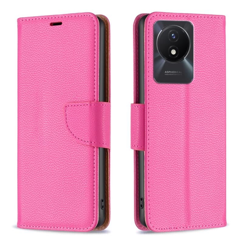 Θήκη τηλεφώνου από γνήσιο δέρμα με καθαρό χρώμα και υφή Λίτσι για vivo Y02 4G (Ροζέ κόκκινο)
