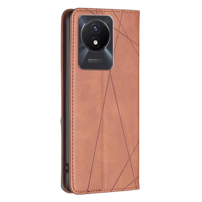 Για το vivo Y02 4G Prismatic Invisible μαγνητική δερμάτινη θήκη τηλεφώνου (Καφέ)