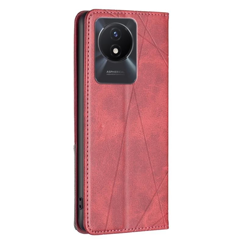 Για το vivo Y02 4G Prismatic Invisible Μαγνητική δερμάτινη θήκη τηλεφώνου (Κόκκινο)