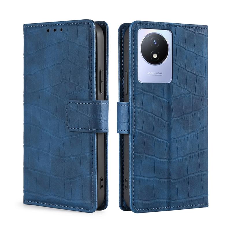 For vivo Y02 4G Skin Feel Crocodile Magnetic Clasp Leather Phone Case(Blue)