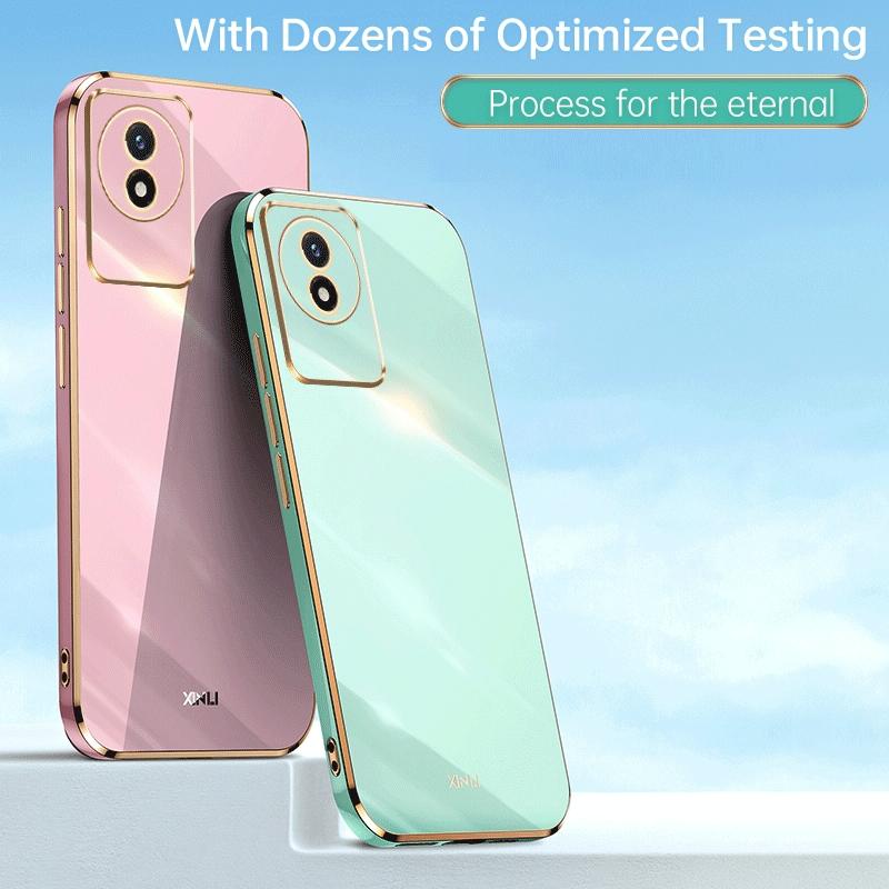 Θήκη κινητού τηλεφώνου XINLI για vivo Y02 4G, ευθεία άκρη, 6D επιμετάλλωση TPU (Μέντα Πράσινο)