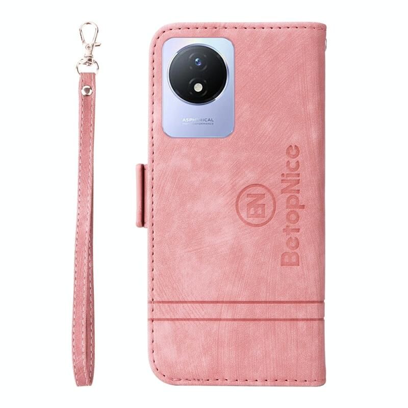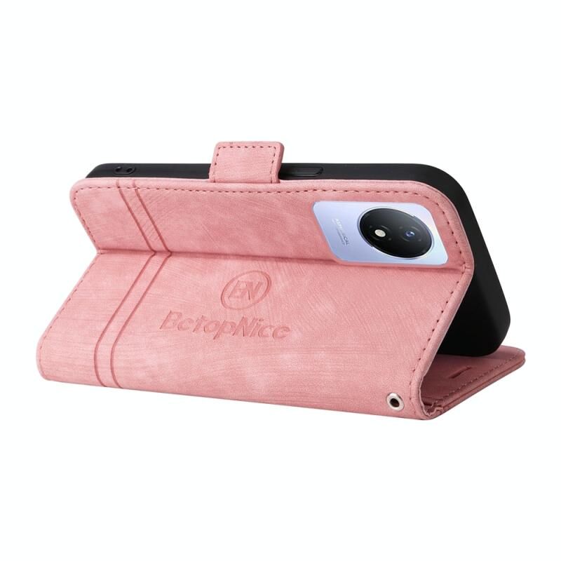 Για το vivo Y02 4G / Y02A / Y11 2023 BETOPNICE Διπλής όψης δερμάτινη θήκη τηλεφώνου με αγκράφα (ροζ) (ρόζ)