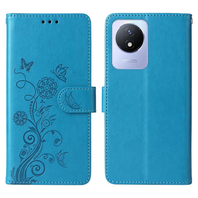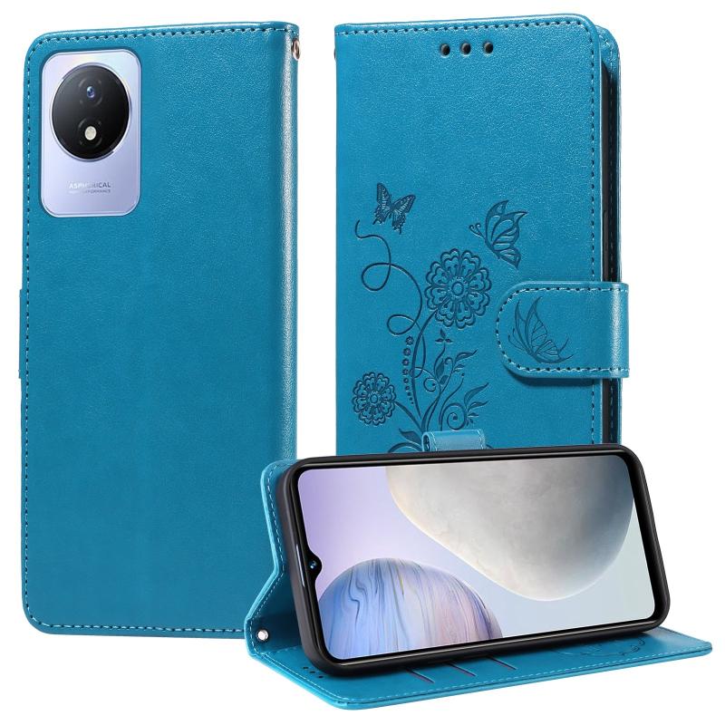 For vivo Y02 4G / Y11 2023 / Y02A Embossed Butterfly Flowers Leather Phone Case(Blue)