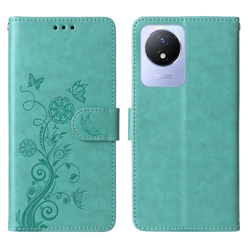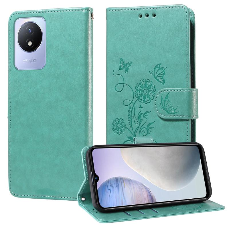 For vivo Y02 4G / Y11 2023 / Y02A Embossed Butterfly Flowers Leather Phone Case(Green)