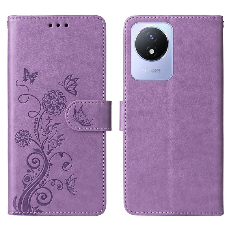 For vivo Y02 4G / Y11 2023 / Y02A Embossed Butterfly Flowers Leather Phone Case(Purple)