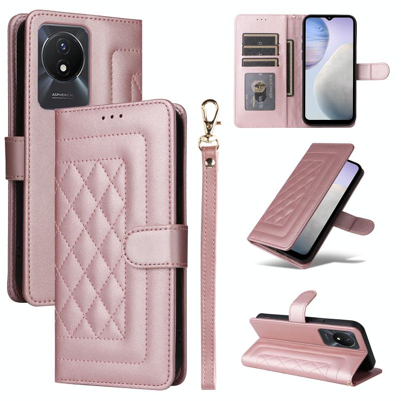 For vivo Y02 Diamond Lattice Leather Flip Phone Case(Rose Gold)