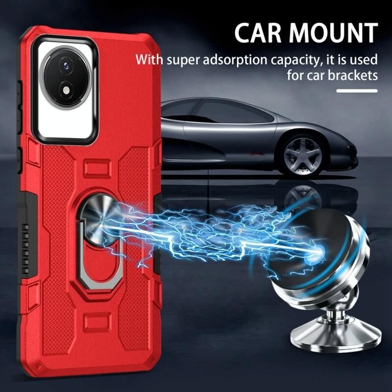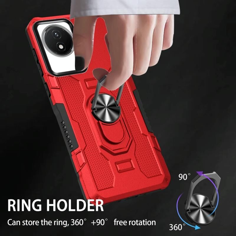 Για το vivo Y02 Ring Holder Armor Υβριδική θήκη τηλεφώνου (Κόκκινο)