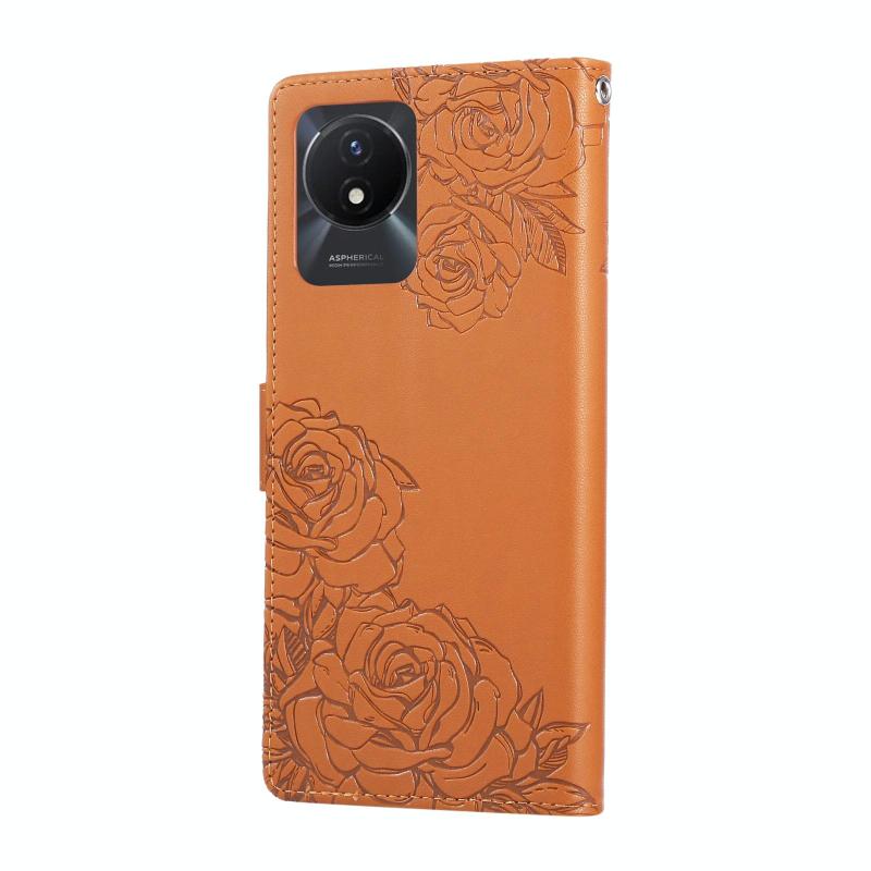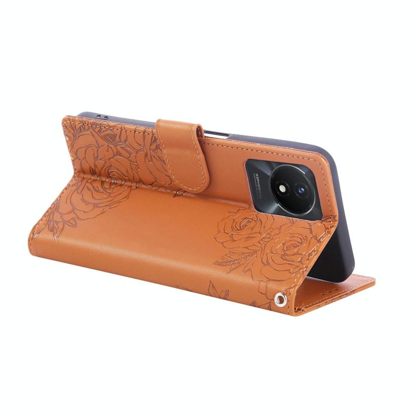 For vivo Y02 / Y11 2023 / Y02A Rose Flower Embossed 3-Card Slots Leather Phone Case(Brown)