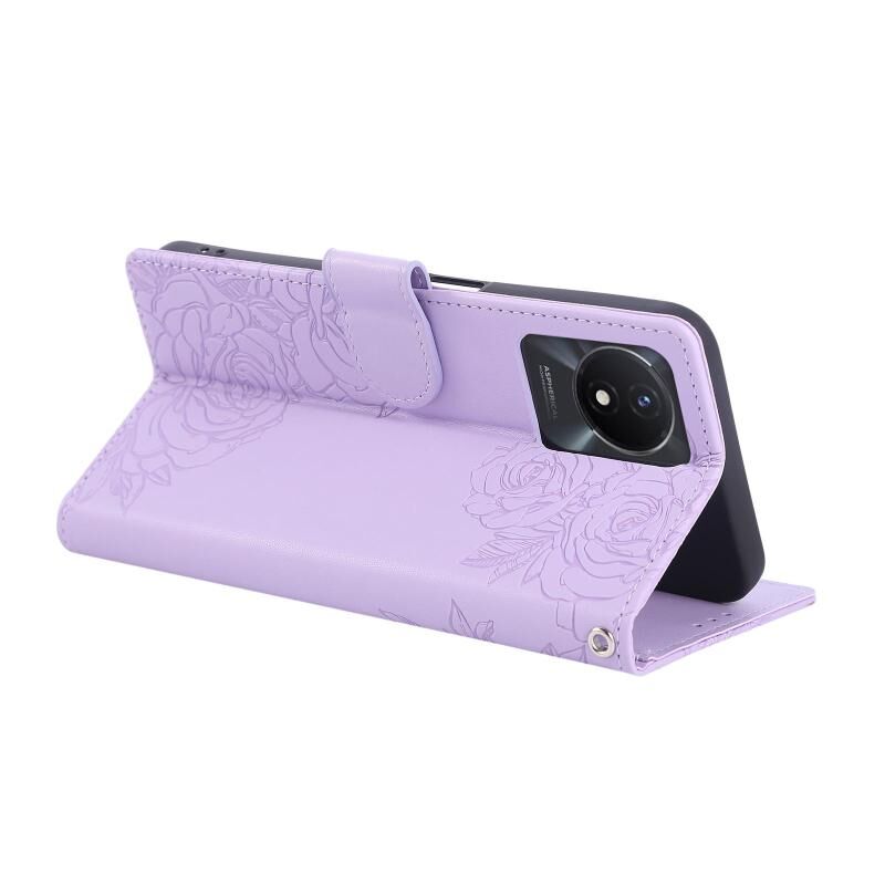 For vivo Y02 / Y11 2023 / Y02A Rose Flower Embossed 3-Card Slots Leather Phone Case(Purple)