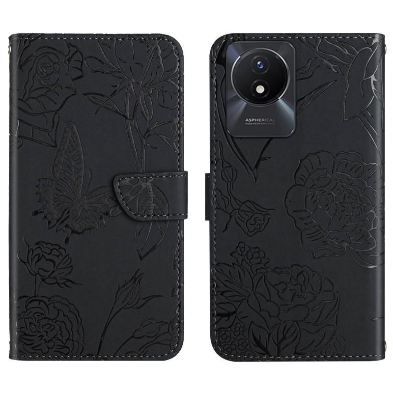 For vivo Y02A 4G / Y02 4G / Y11 2023 HT03 Skin Feel Butterfly Embossed Flip Leather Phone Case(Black)