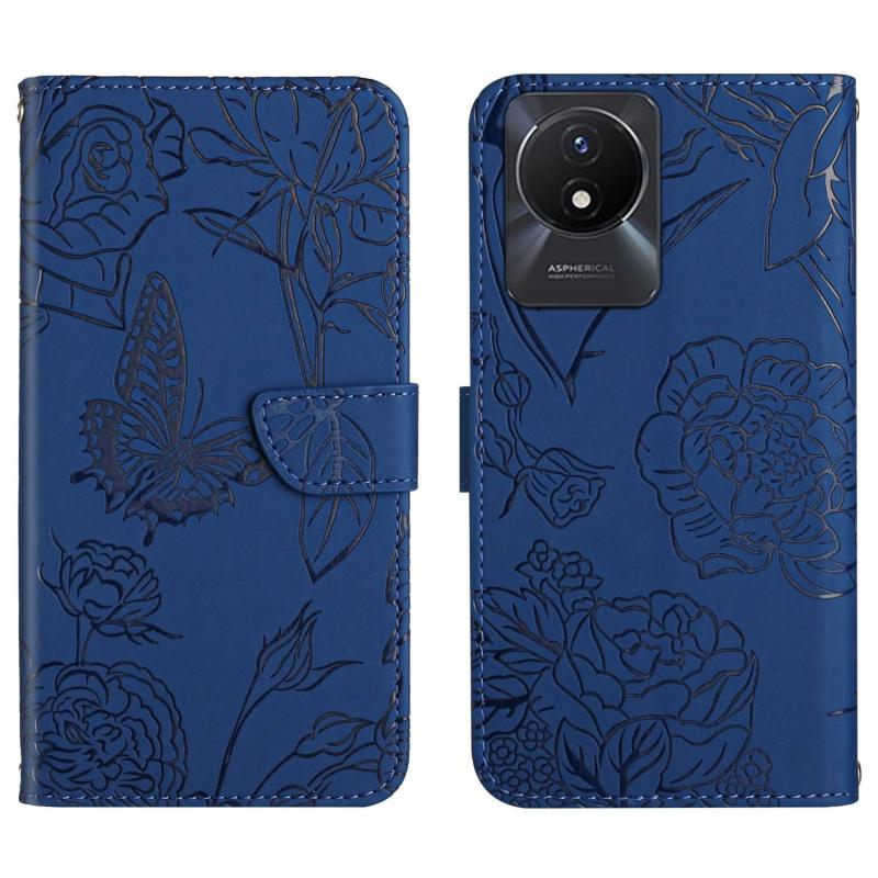For vivo Y02A 4G / Y02 4G / Y11 2023 HT03 Skin Feel Butterfly Embossed Flip Leather Phone Case(Blue)