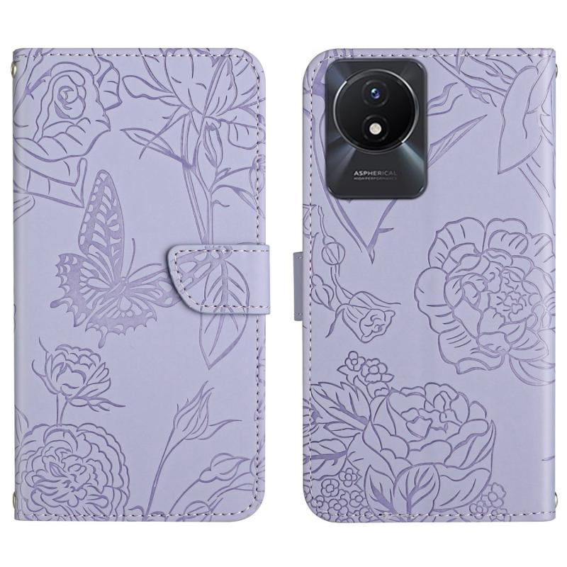 For vivo Y02A 4G / Y02 4G / Y11 2023 HT03 Skin Feel Butterfly Embossed Flip Leather Phone Case(Purple)