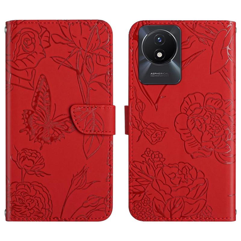 For vivo Y02A 4G / Y02 4G / Y11 2023 HT03 Skin Feel Butterfly Embossed Flip Leather Phone Case(Red)