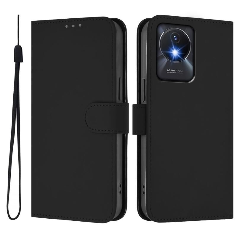 Θήκη τηλεφώνου από δέρμα με συμπαγή χρώματα και αίσθηση δέρματος για vivo Y02A 4G / Y02 4G / Y11 2023 με κορδόνι (Καφέ)