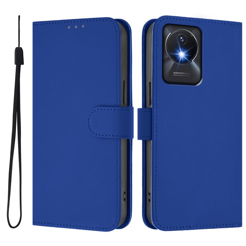 Θήκη τηλεφώνου από δέρμα με συμπαγή χρώματα και αίσθηση δέρματος για vivo Y02A 4G / Y02 4G / Y11 2023 με κορδόνι (Καφέ)