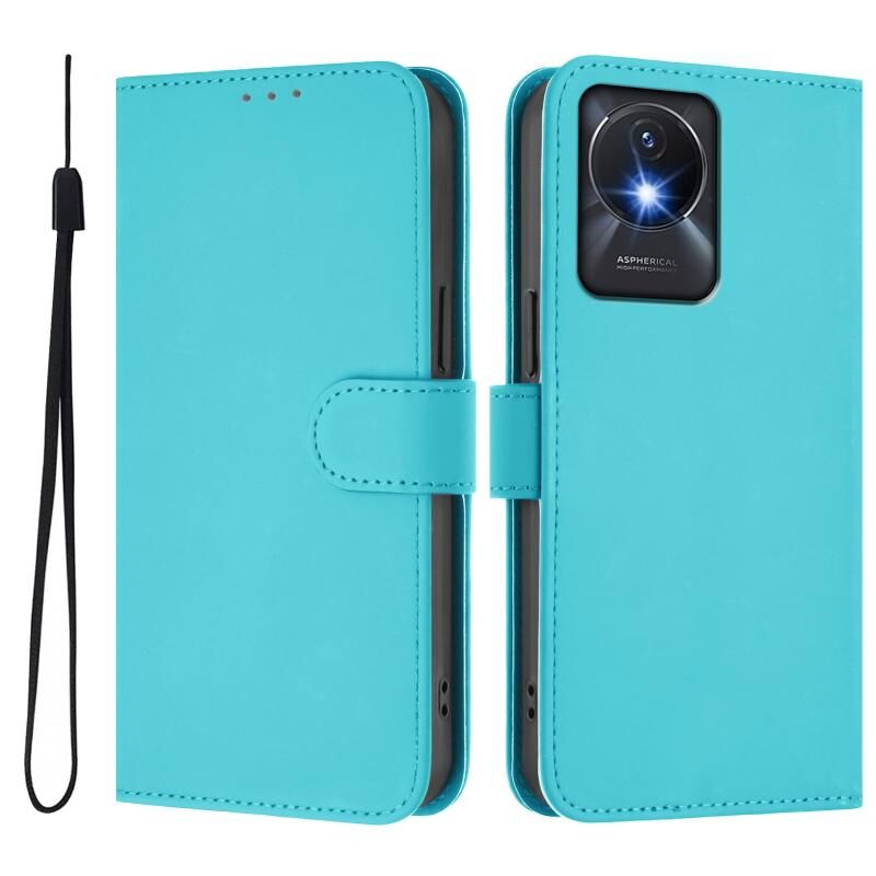 Θήκη τηλεφώνου από δέρμα με συμπαγή χρώματα και αίσθηση δέρματος για vivo Y02A 4G / Y02 4G / Y11 2023 με κορδόνι (Καφέ)
