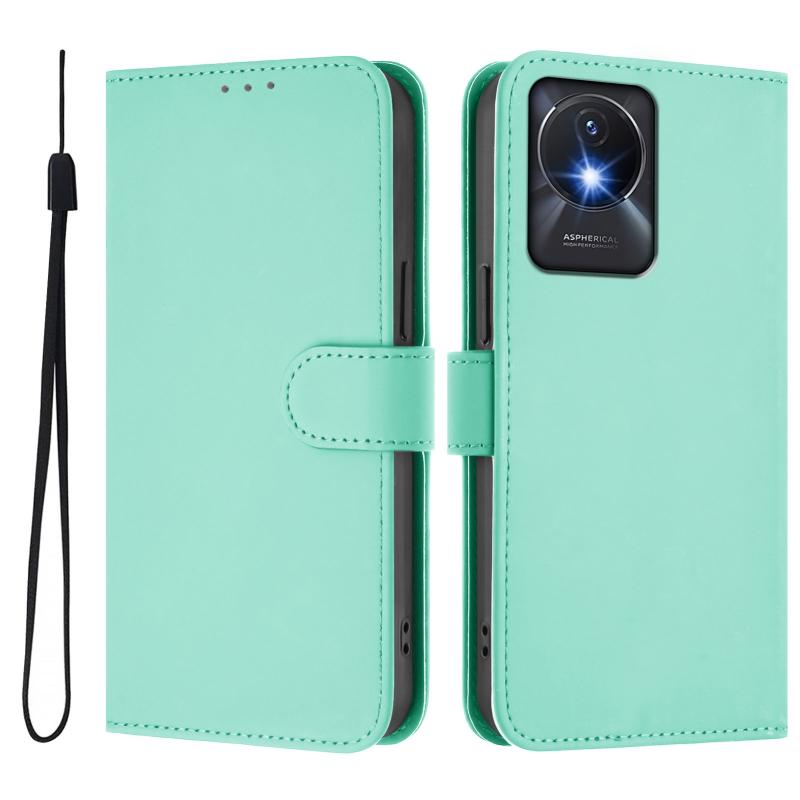 Θήκη τηλεφώνου από δέρμα με συμπαγή χρώματα και αίσθηση δέρματος για vivo Y02A 4G / Y02 4G / Y11 2023 με κορδόνι (Καφέ)