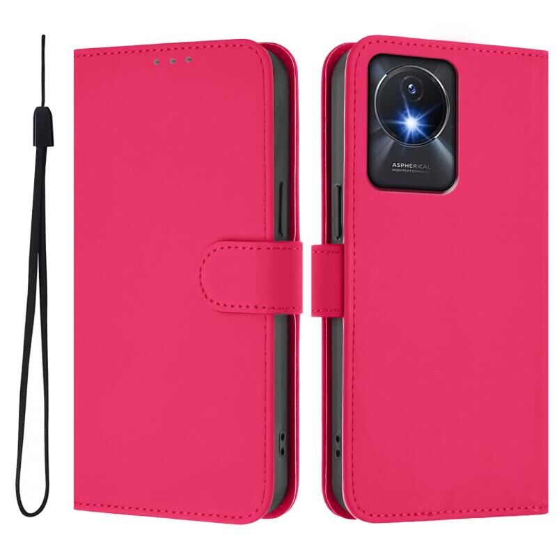 Θήκη τηλεφώνου από δέρμα με συμπαγή χρώματα και αίσθηση δέρματος για vivo Y02A 4G / Y02 4G / Y11 2023 με κορδόνι (Καφέ)