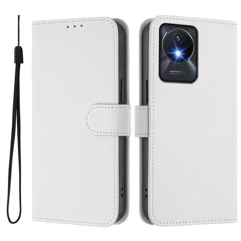 Θήκη τηλεφώνου από δέρμα με συμπαγή χρώματα και αίσθηση δέρματος για vivo Y02A 4G / Y02 4G / Y11 2023 με κορδόνι (Καφέ)