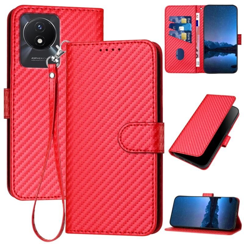 Θήκη τηλεφώνου από δέρμα με ανθρακονήματα και λουρί για vivo Y02A 4G/Y02 4G/Y11 2023/Y02t YX0070 (Κόκκινο)
