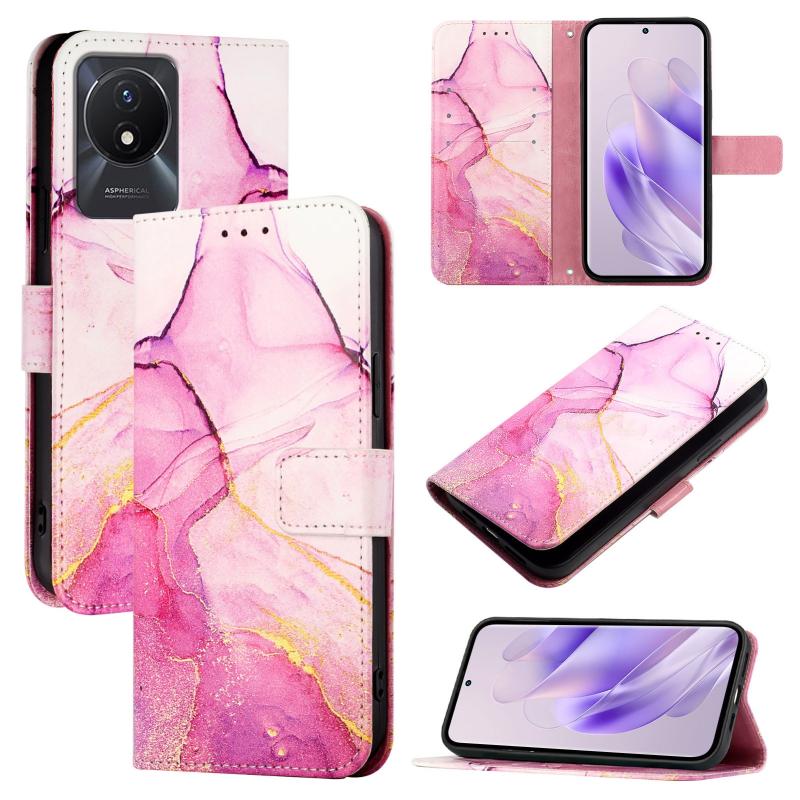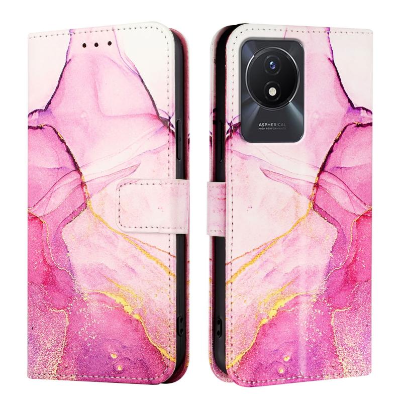 For vivo Y02A / Y02 / Y11 2023 / Y02t PT003 Marble Pattern Flip Leather Phone Case(Pink Purple Gold)