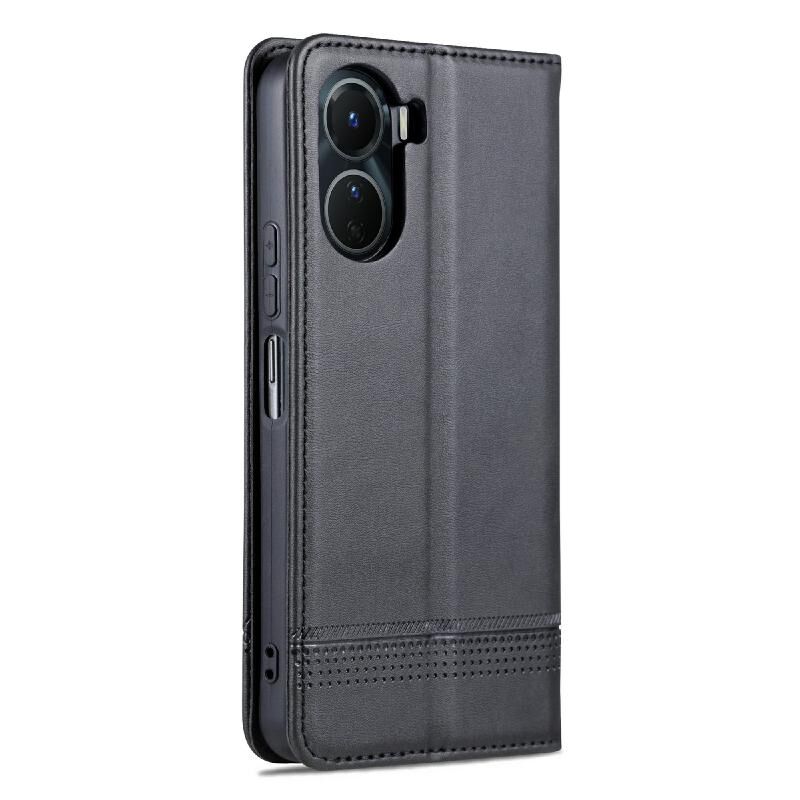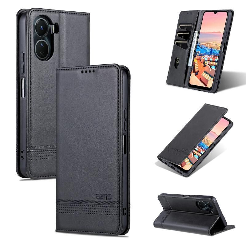 Για το vivo Y02s 4G/Y16 4G AZNS Μαγνητική θήκη τηλεφώνου από δέρμα με υφή μοσχαριού (μαύρο) (Μαύρο)