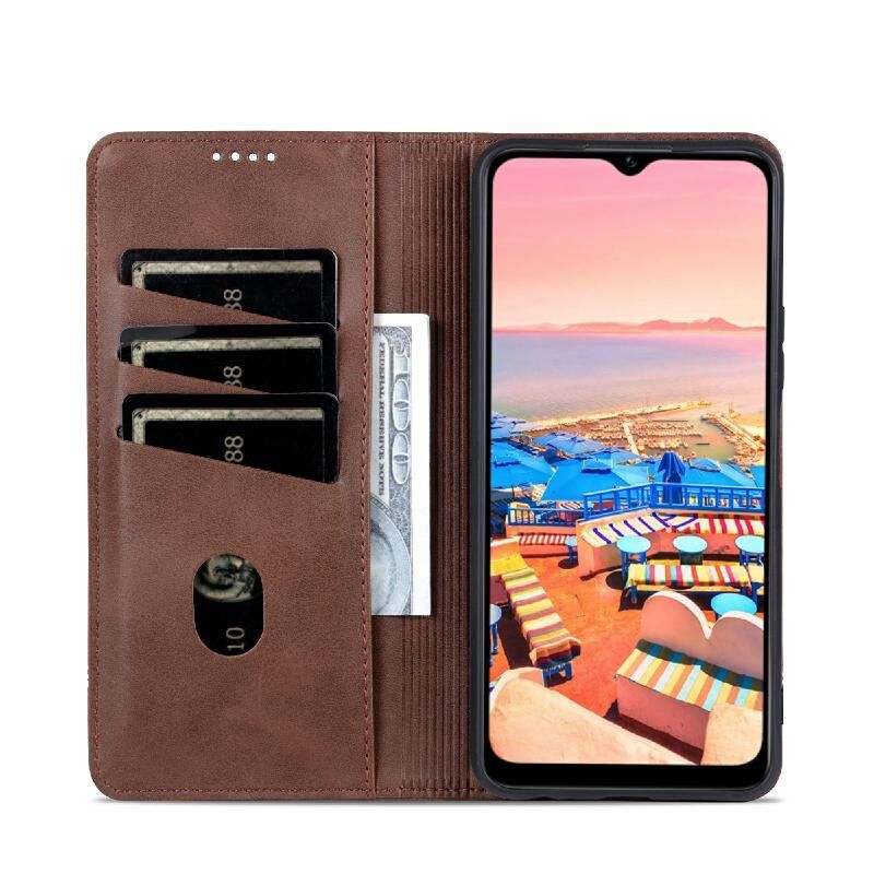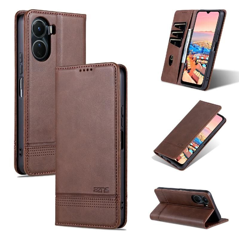 Για το vivo Y02s 4G/Y16 4G AZNS Μαγνητική θήκη τηλεφώνου από δέρμα με υφή μοσχαριού (σκούρο καφέ) (Σκούρο καφέ)
