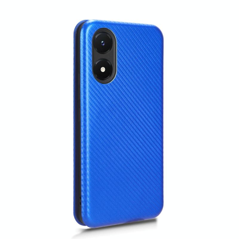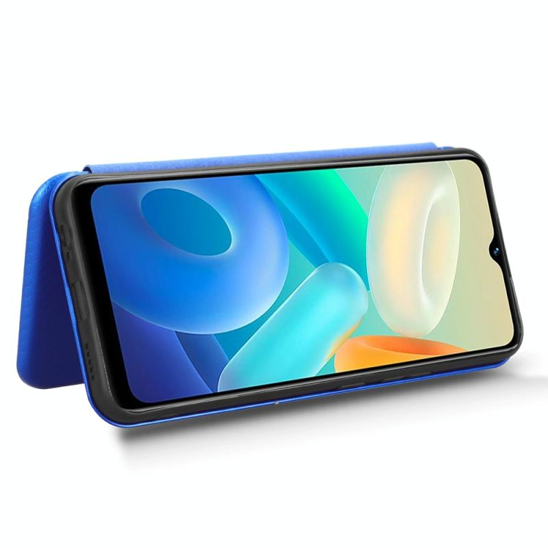 Θήκη τηλεφώνου από δέρμα με υφή ανθρακονήματος για vivo Y02s (Μπλε)