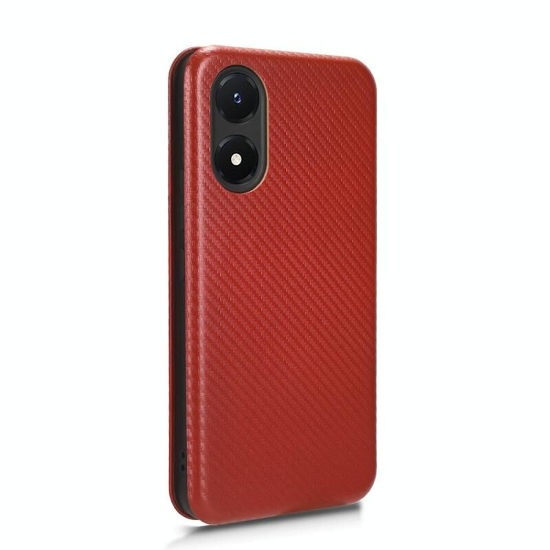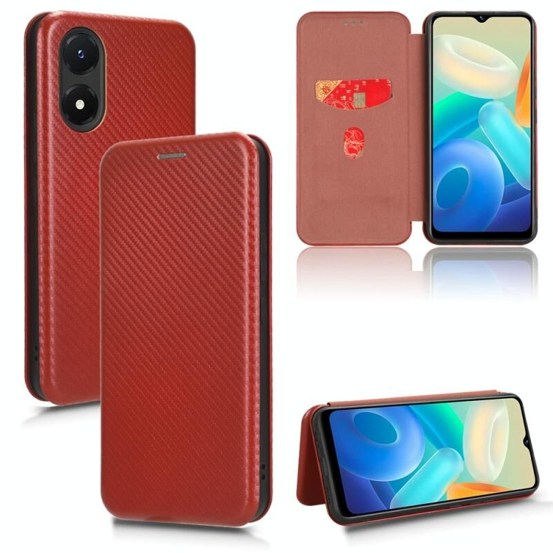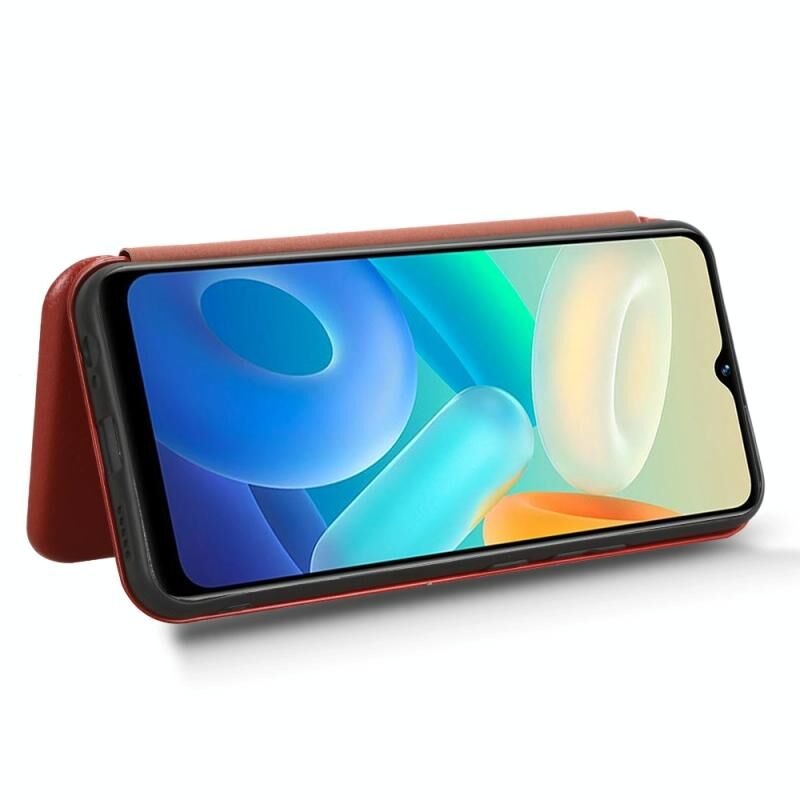 Θήκη τηλεφώνου από δέρμα με υφή ανθρακονήματος για vivo Y02s (Καφέ)