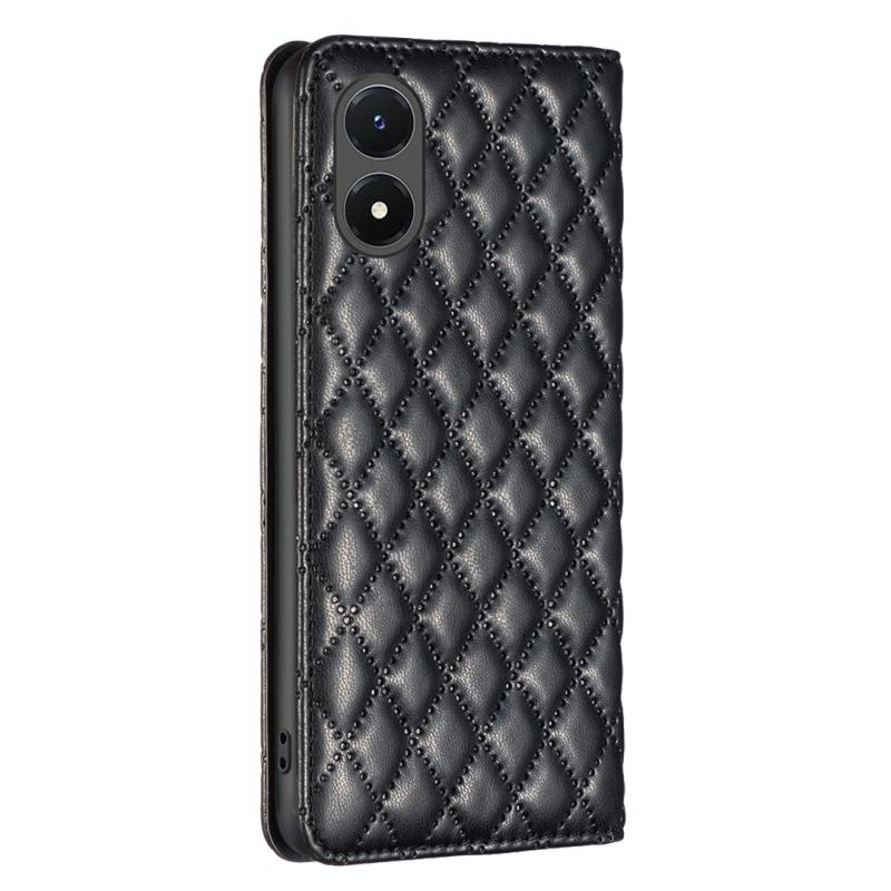 Θήκη τηλεφώνου Flip από Δερματίνη με Μαγνητικό Κλείσιμο και Διαμαντένιο Σχέδιο για vivo Y02s (Μαύρο)