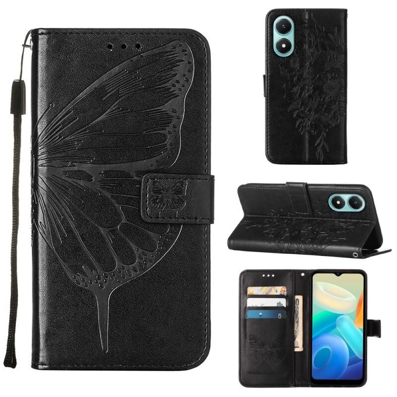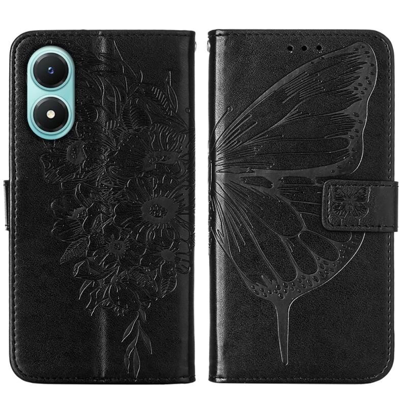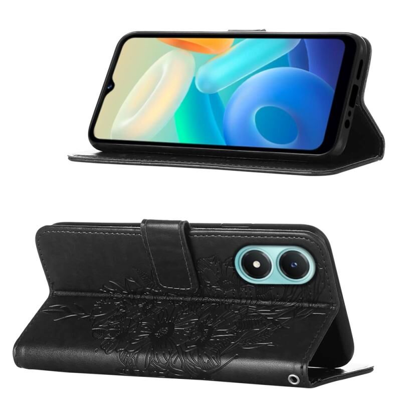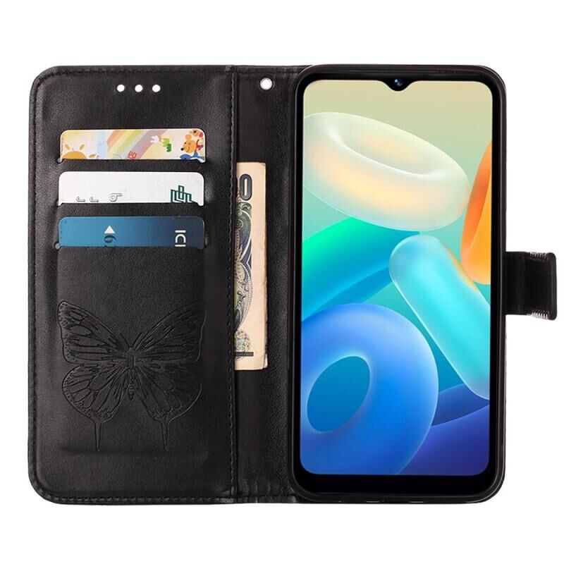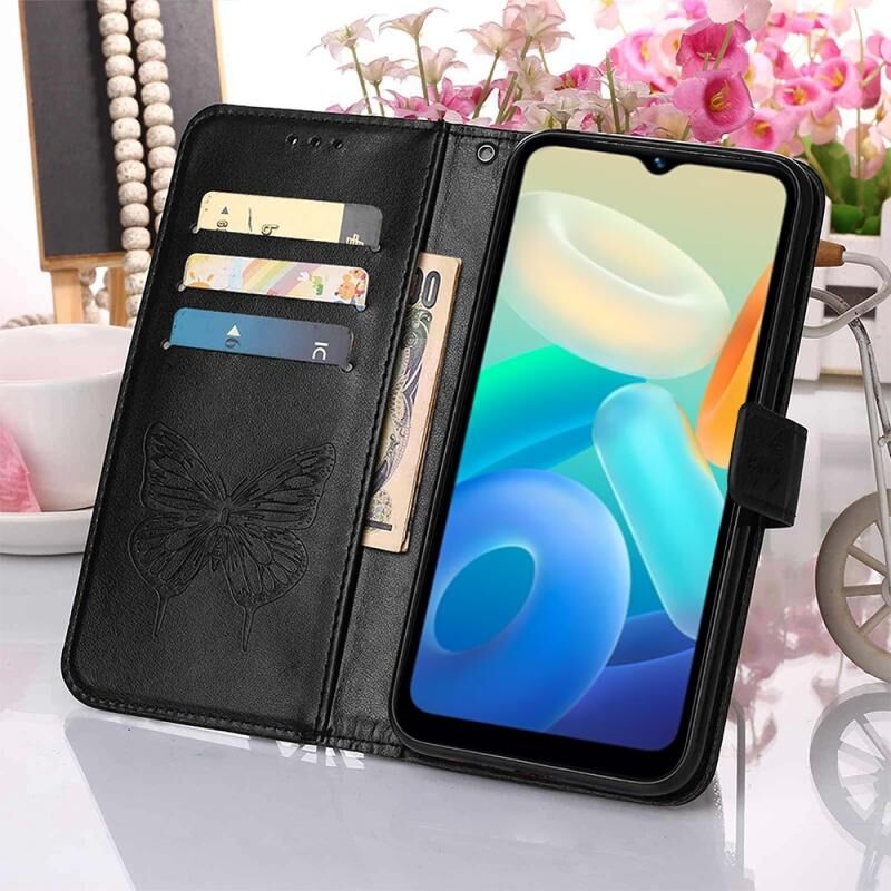 Θήκη τηλεφώνου από δέρμα με ανάγλυφο σχέδιο πεταλούδας για vivo Y02S (Μαύρο)