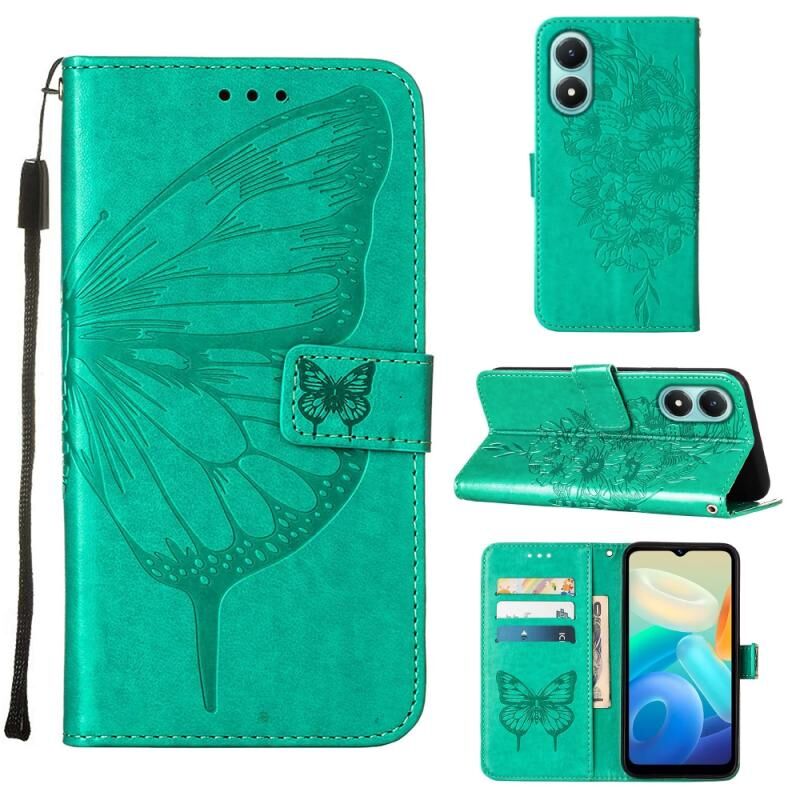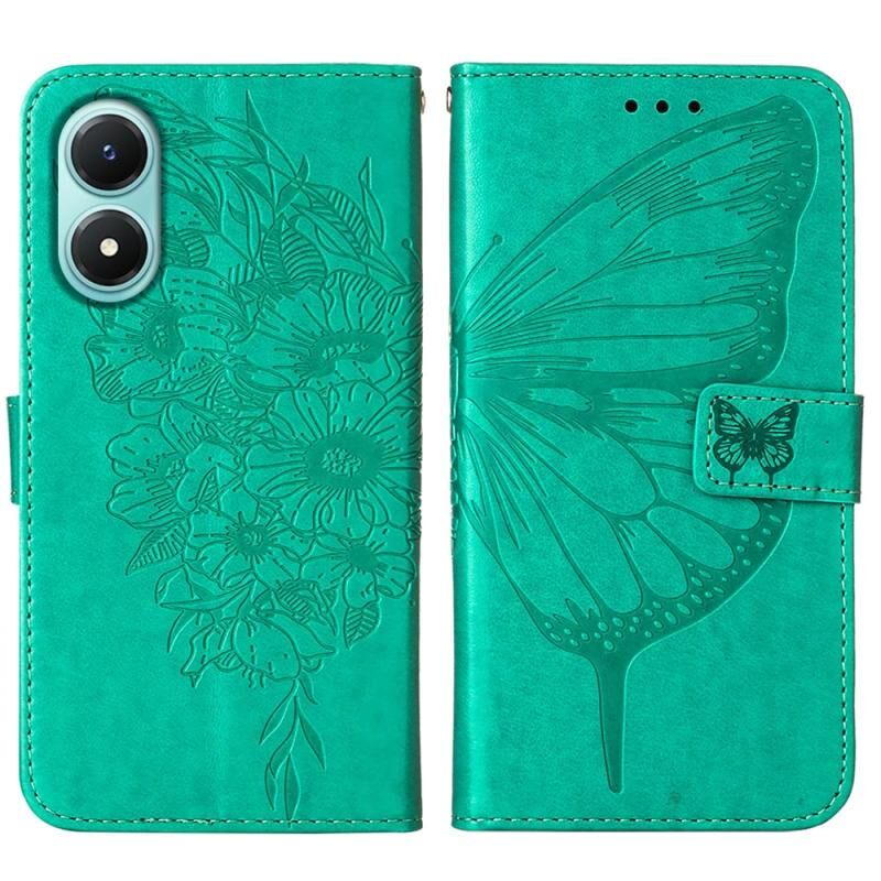 Θήκη τηλεφώνου από δέρμα με ανάγλυφο σχέδιο πεταλούδας για vivo Y02S (πράσινο)