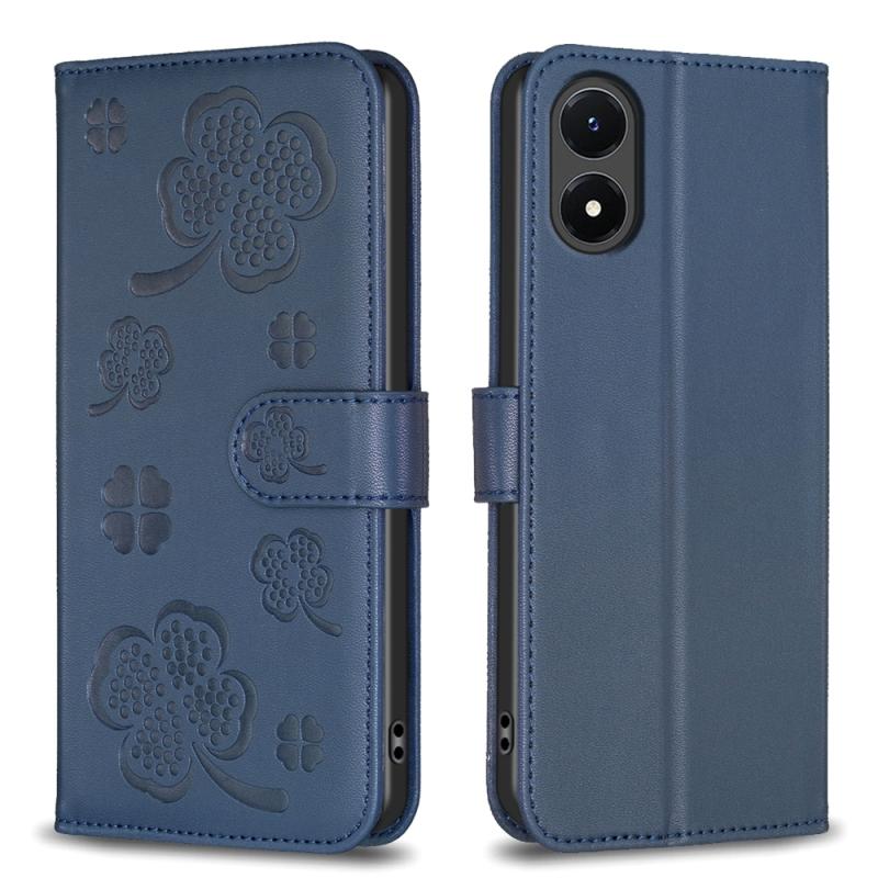 For vivo Y02s Four-leaf Embossed Leather Phone Case(Blue)