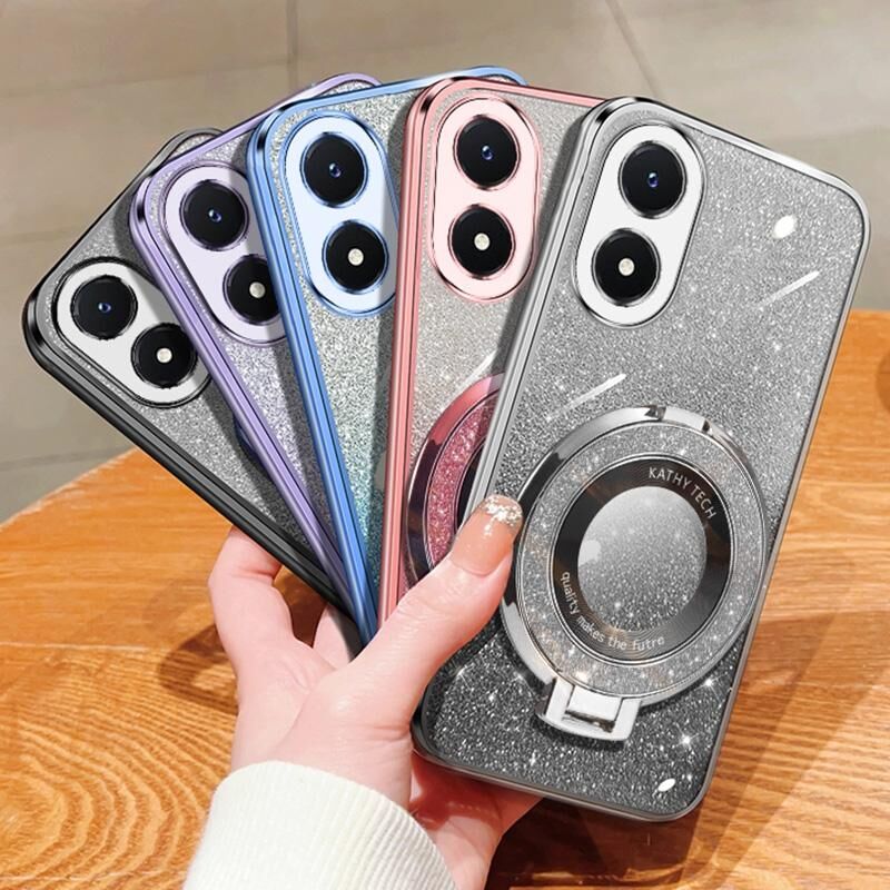 Θήκη τηλεφώνου TPU για vivo Y02s με επιμετάλλωση, διαβαθμισμένη λάμψη, στρογγυλή βάση (Ροζ)