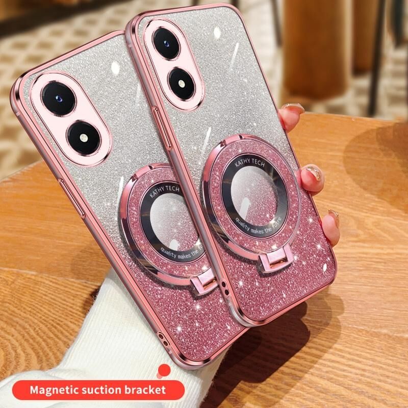 Θήκη τηλεφώνου TPU για vivo Y02s με επιμετάλλωση, διαβαθμισμένη λάμψη, στρογγυλή βάση (ρόζ)
