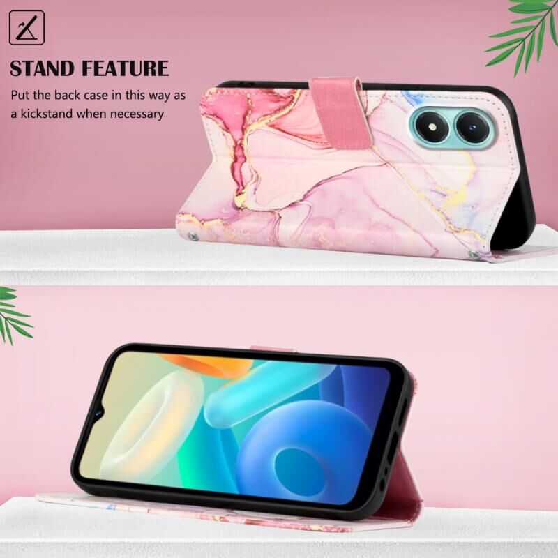 Θήκη τηλεφώνου από δέρμα με σχέδιο μάρμαρου για vivo Y02s PT003 (Ροζ, Μωβ, Χρυσό)