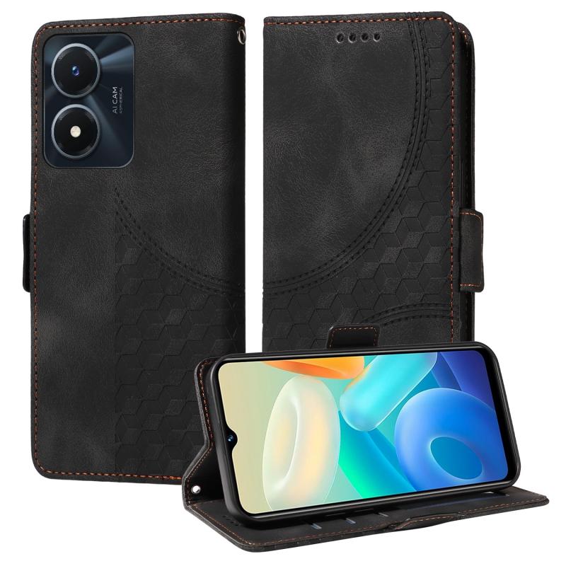 For vivo Y02s / Y56 5G Global Embossed Rhombus Starry Leather Phone Case(Black)